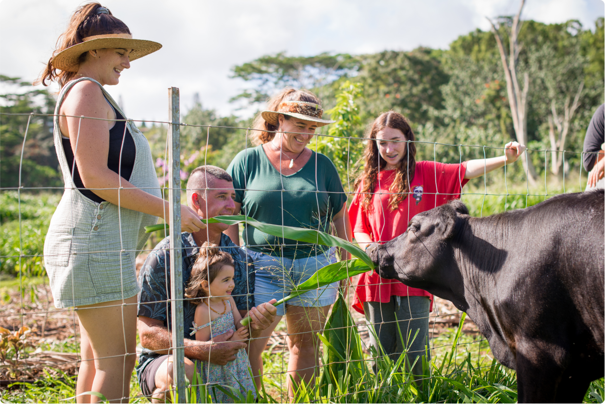 One of Christy’s favorite events at the farm are “Ohana Days,” which are dedicated days set aside for local Kauai residents to visit the farm, spend time with their families, and reconnect with the land. This is particularly special for locals whose pets are being cared for at the farm.