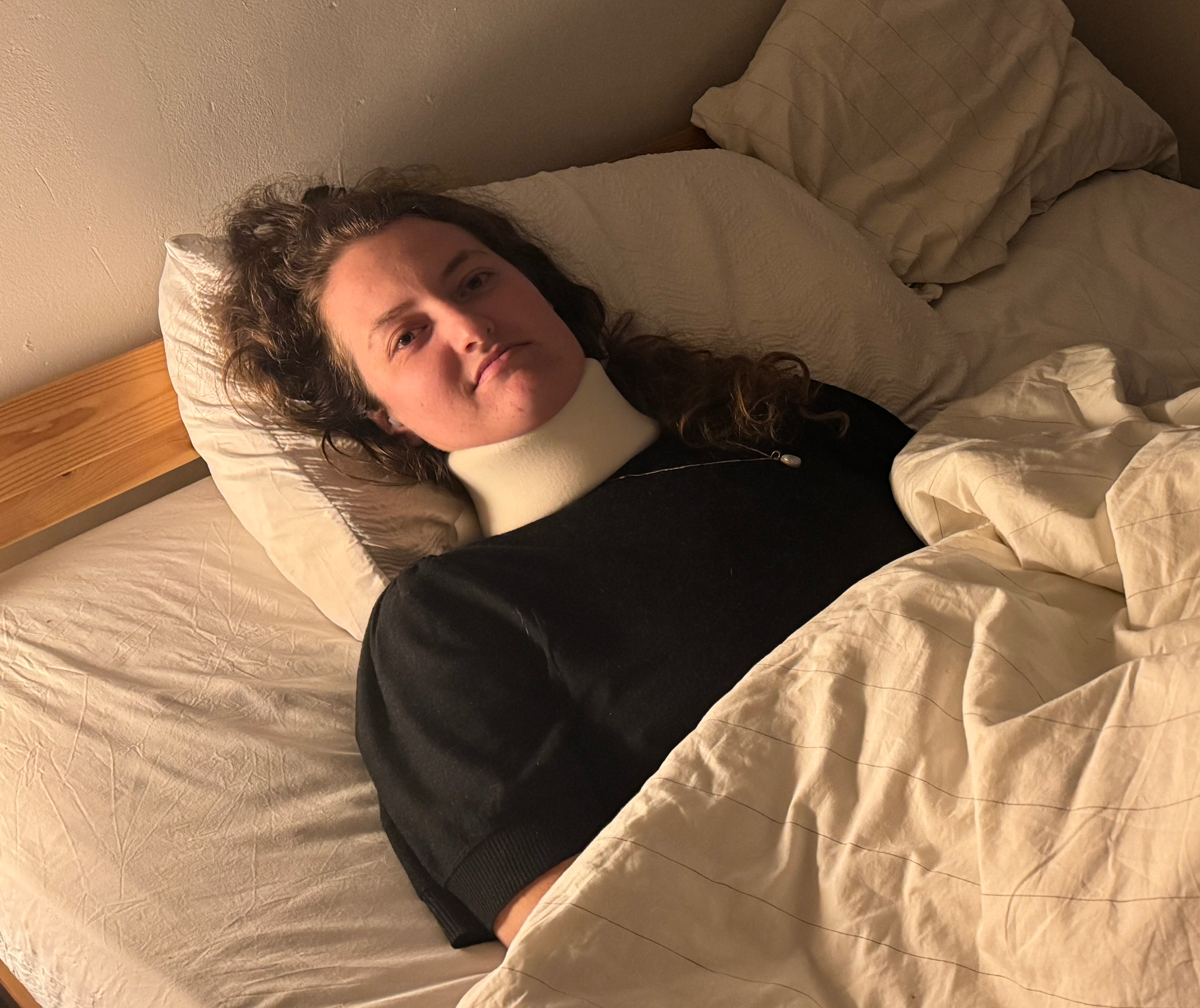 Na een whiplash herstelde de nek van Sanne door EDS niet zoals bij anderen. Ze had een levensreddende nekoperatie nodig in het buitenland. Om het geld hiervoor bij elkaar te krijgen startte ze een GoFundMe, en kon ze de operatie ondergaan.